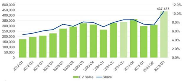 Record U.S. EV sales in 3Q2025.