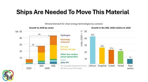 Remember, 80% of the world’s trade is carried by ships, and energy fuels account for 40% of global tonnage. If we add critical minerals, energy accounts for two-thirds of all tonnage shipped today, before the projected new volumes of critical minerals are taken into account.