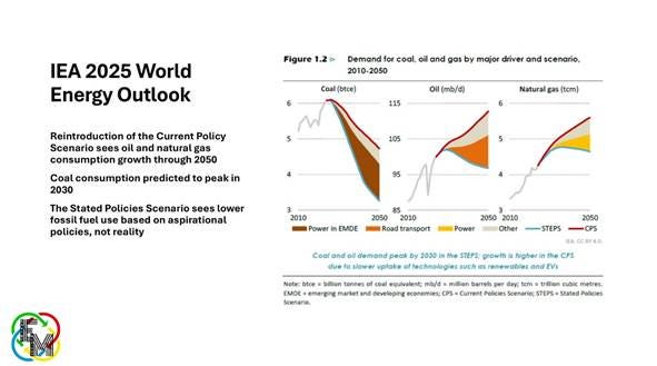 As the UN’s COP30 conference opened last month in Belém, Brazil, in the heart of the Amazon, the International Energy Agency released its latest World Energy Outlook. After six years without its Committed Policies Scenario, which is based on existing government climate policies, the IEA reintroduced it. The CPS calls for global oil consumption to rise from 100 million barrels a day this year to 113 million barrels a day in 2050. It also foresees higher natural gas consumption. Only coal use is predicted to be lower in 2050. Renewable energy does grow significantly, but not enough to supplant fossil fuels.