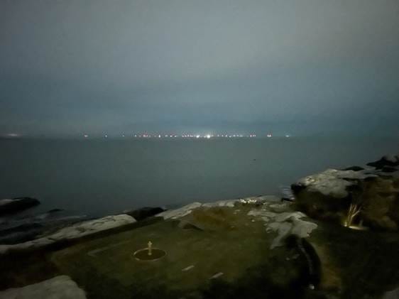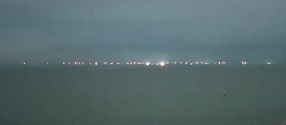 Lastly, we have included several pictures from a friend with a seaside home in Middletown. The images, which we expanded for clarity, are of the Vineyard Wind turbines. Our friend wrote, “At night it is a horizon of flashing red lights, even more disturbing than the daytime view.” You can judge for yourself.