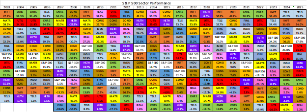 The following table shows the monthly investment ranking within the S&P 500 Index for the energy sector, along with the sector’s monthly performance and the average spot oil price.