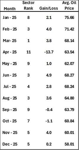 Energy Finishes 2025 In 8th Place Out Of 11 Sectors