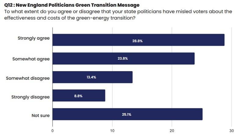 New England and New York are among the centers of public outrage over green energy and high utility bills. A new poll of New England women who are expected to vote in the upcoming election confirms how little they know about green energy policies and their impact on local electricity bills. Still, they are upset about the cost of power. Importantly, the women feel misled by local politicians about the cost of the green energy transition.