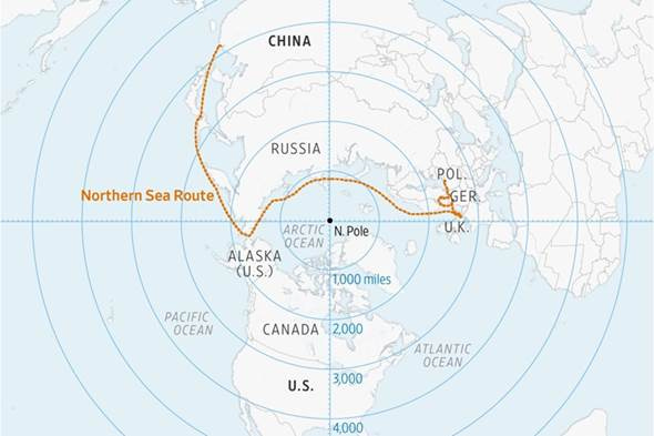 The Russian Arctic route connecting Europe and Asia.