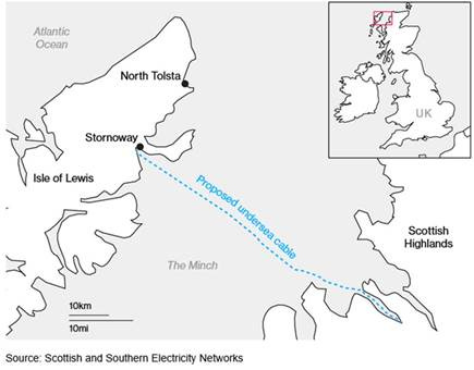 The next challenge for the wind projects is constructing a new cable to ship the power from Lewis to Scotland, as the existing connection is already overwhelmed. There are many days when the island’s few wind turbines are spinning in the wind because of the cable’s capacity limitation.