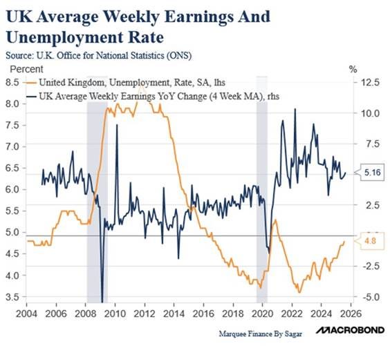 In the United Kingdom, the cost of electricity, mainly due to the government’s energy policies in response to the push for net-zero emissions, has become a significant political and economic issue. The unemployment rate is nearly three-quarters of the way back to its peak during the COVID pandemic. It has a long way to go to match the rates experienced after the Great Financial Crisis, but workers are looking at a declining trend in average weekly earnings. Neither of these trends is good for the country’s economy.